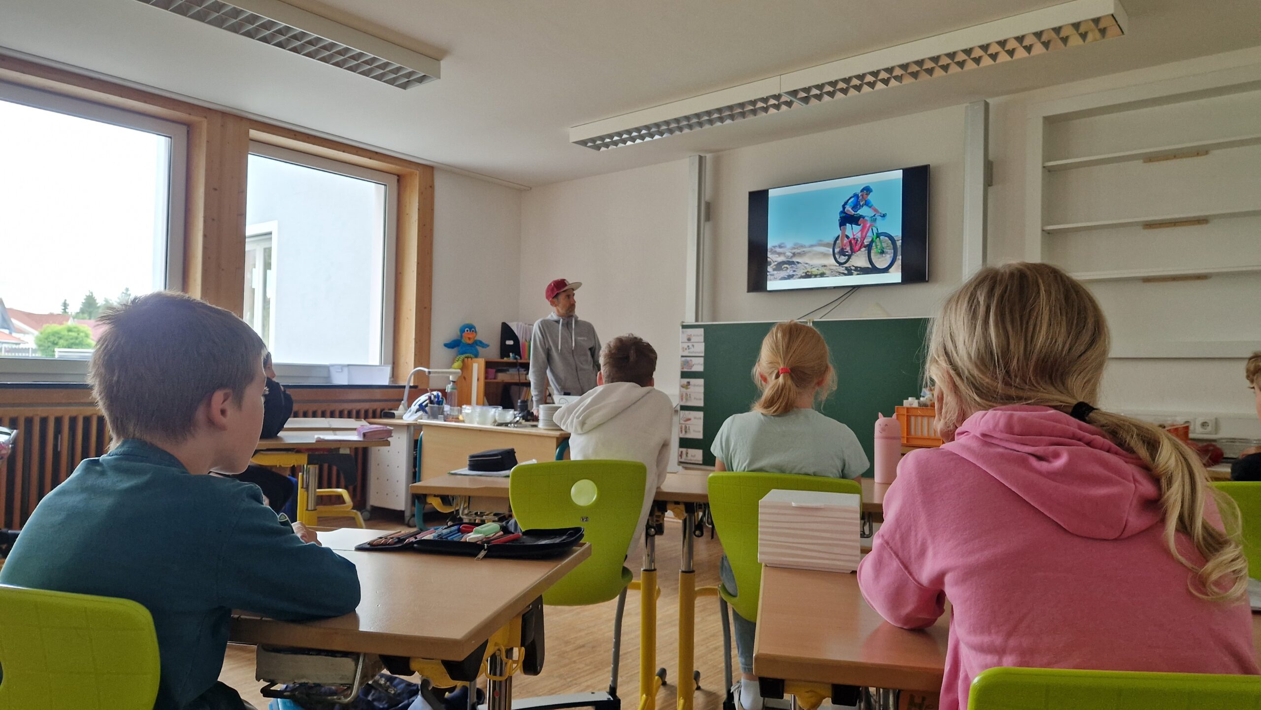Kurz vor den Sommerferien bekam die Josia-Schule hohen Besuch: der Mountainbike Profi Daniel Gathof besuchte die Klassen 3/4 und 5/6 und führte jeweils einen spannenden Workshop durch. Draußen auf dem Schulhof durften die Kinder mit ihren eigenen Rädern einige Herausforderungen bewältigen und bekamen dafür echte Profi-Tipps. Das Motto dabei: Wer schnell will, muss auch langsam können. Anschließend erzählte der Sportler mit einer Bilderpräsentation aus seinem Profi-Alltag sowie seinem Werdegang, gab dabei wertvolle Lebensprinzipien über Bewegung, Sicherheit und Ernährung weiter und beantwortete die Fragen der Schüler. Abgerundet wurde der Workshop mit einem gesponserten leckeren und gesunden Pausenbrot.